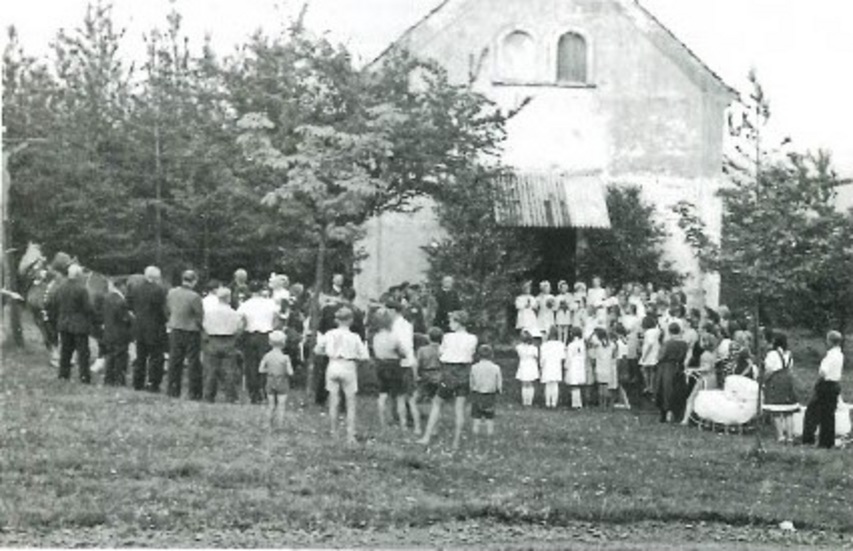 Damit war die Gummelbergkapelle faktisch zu einer Art Dorfkirche von Pleu- ßen und Steinmühle geworden und bildete fortan das dörfliche Heiligtum. Dies kam auch wieder zum Ausdruck, als die am 16. März 1899 ins Leben gerufene Freiwillige Feuerwehr Pleußen am 28. Juni 1925 ihr 25-jähriges Gründungsfest, verbunden mit Fahnenweihe feierte und der Festgottesdienst am Sonntag sowie der Trauergottesdienst am Montag in der Gummelbergkapelle stattfand.