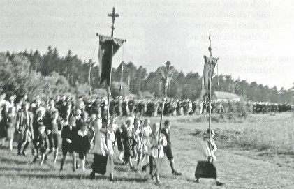 Als im Frühjahr 1942 auf staatliche Weisung hin alle Glocken von den Kirchtürmen und Kapellen im Stiftland eingezogen wurden, um das Material für Kriegszwecke zu verwenden, mussten leider auch die beiden Glocken der Gummelbergkapelle abgeliefert werden. Unter den Gläubigen, die sich um 1942 an der Waldsassener Bittprozession zum Gummelberg beteiligten, befand sich offenbar auch ein Fotograf der damals den Bittgang und die Teilnehmer auf mehreren Farbdias im Bilde festhielt. Der begleitende Priester war damals Kaplan Alois Ederer. Die Dias haben sich erfreulicherweise noch erhalten und zeugen heute von der großen Zahl an Teilnehmern, die in dieser Zeit das Gelöbnis erfüllten.