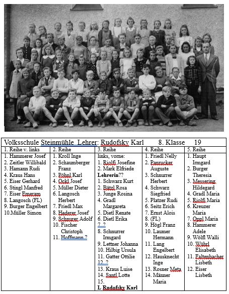Der Klassenlehrer Hans Wopperer unterrichtete von 1956 bis 1960 an der Schule. Hier der Versuch die Namen der Schülerinnen und Schüler zu rekonstruieren, Ergänzungen und Korrekturen erwünscht: