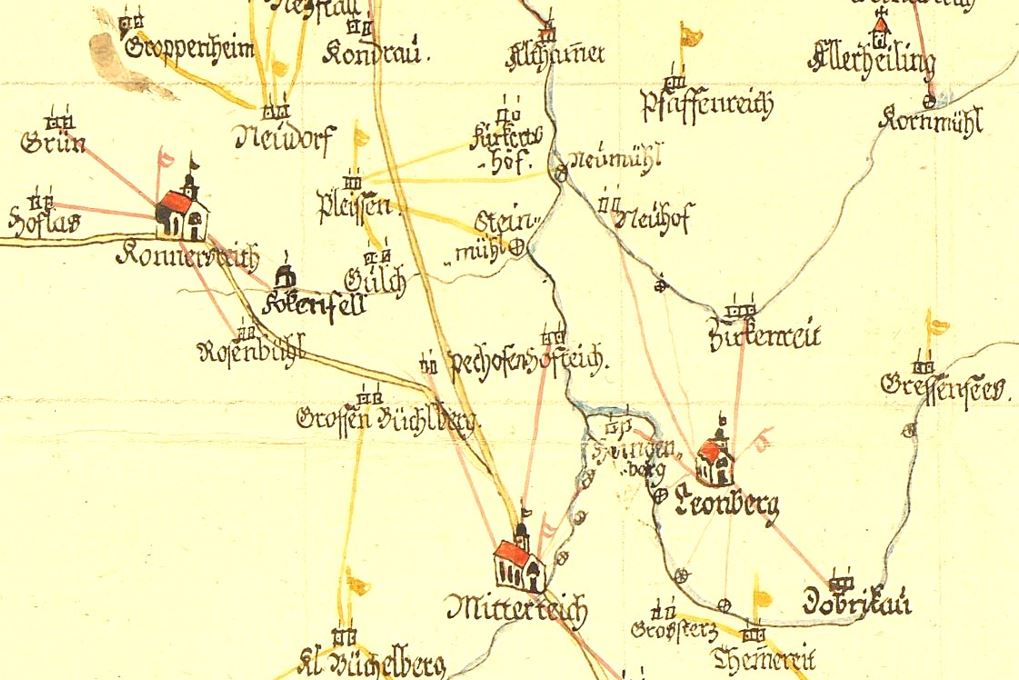 In welchen Ortschaften Schulen einzurichten waren, findet sich in einem „Entwurf einer Schuleintheilung im Landgerichts-Bezirke Waldsassen“, siehe obige Karte. Demnach sollten in die Hauptschule in Mitterteich auch die Kinder aus Kleinsterz, Pechofen und Hofteich eingeschult werden, in die Nebenschule in Kleinbüchelberg auch die Kinder aus Großbüchelberg, Oberteich, Pechbrunn und in die Nebenschule „Pleißen“ auch die Kinder aus Gulch, Furkatshof und Steinmühl. Gleich 1807 erkennt ein Landrichter Troppmann aus Waldsassen die Raumnöte als Ursache dafür, dass die Kinder aus den Dörfern dem Unterricht fern blieben: „Im allgemeinen habe ich übrigens hier noch allerunterthänigst zu erinnern, daß einige der Hauptschulen, als zu Konnersreith, Mitterteich und Wiesau zu klein seyen, um die Kinder der nächst gelegenen Dorfschaften aufzunehmen, welches bisher eines der hauptsächlichen Hinderniße war, welches die Dorfkinder von Besuchung dieser Schulen abhielt.“