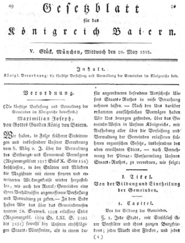 Hinweis: Der Text zur allgemeinen Verwaltungsentwicklung der Gemeinden in Bayern wurde überwiegend übernommen aus „Emma Mages, Gemeindeverfassung 19./20. Jahrhundert“, publiziert im Historischen Lexikon Bayerns.